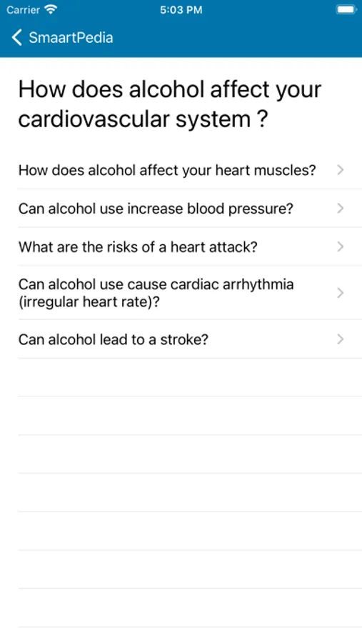 The SMAART Canada app provides educational materials about alcohol use, including low-risk drinking guidelines and the risks associated with heavy alcohol consumption.