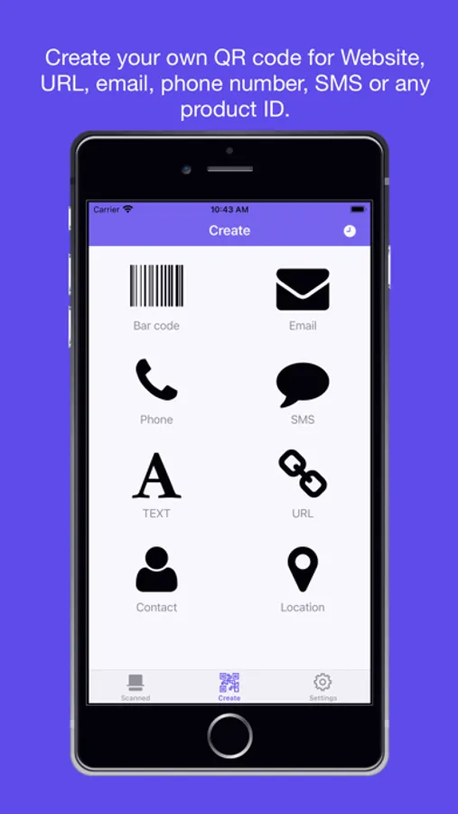 This QR code generator app supports all QR code types. You can generate QR codes for Websites, Phone, Texts,SMS, Location, URL and Email.