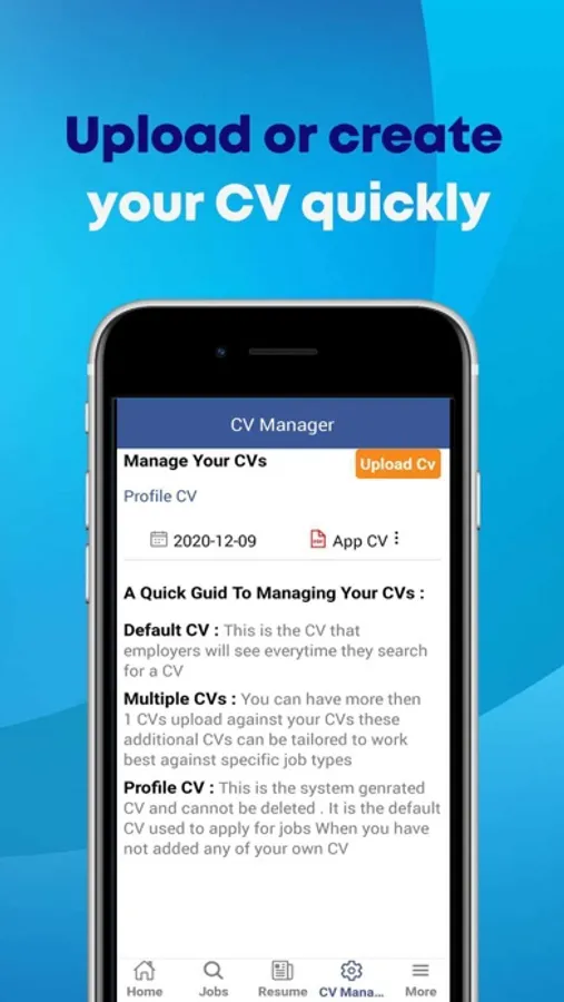 - Create/ Upload your CV directly on the app and start applying for jobs you like or relevant to your experience.