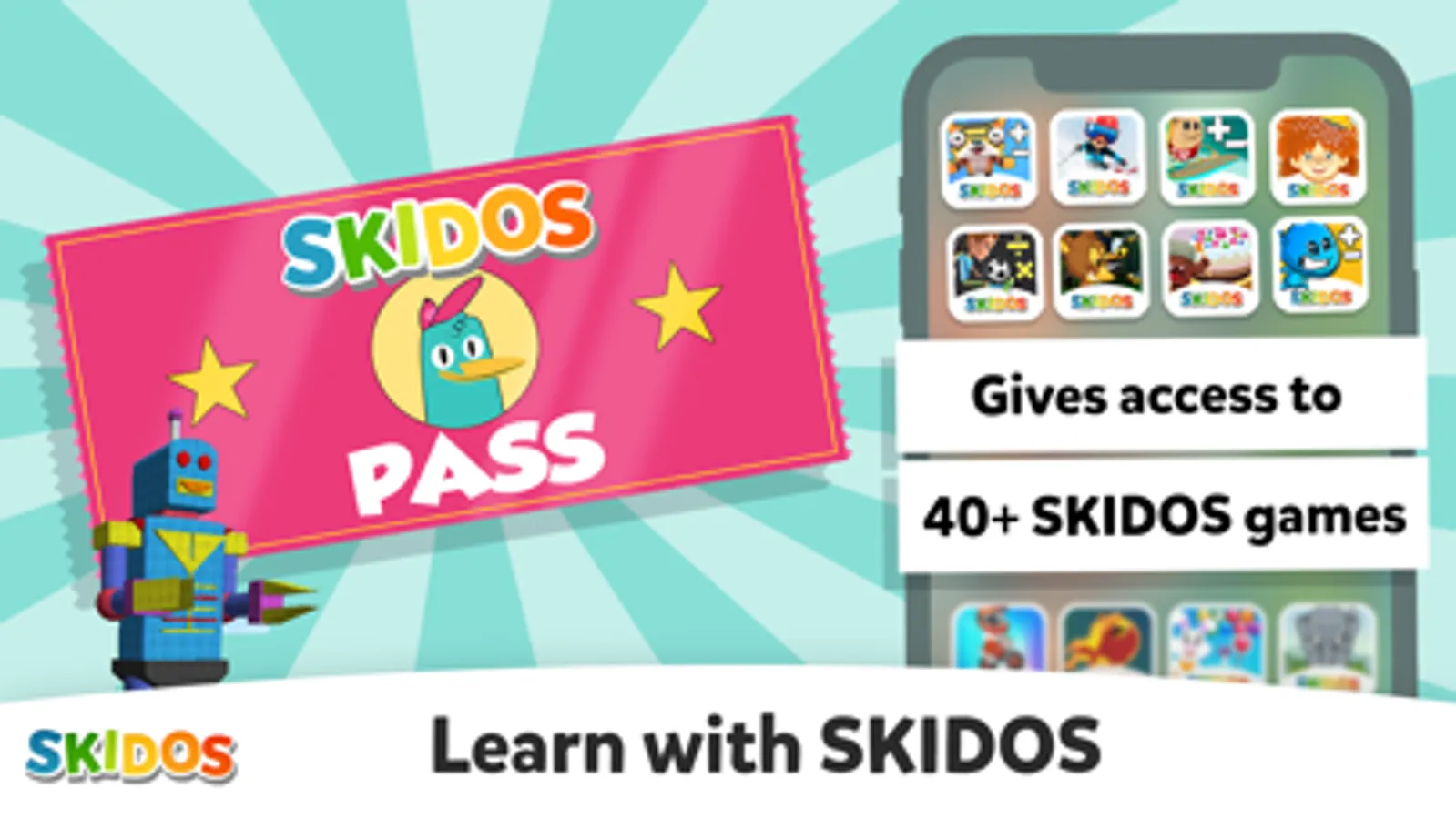 Get Your SKIDOS Pass to all of our apps! Our apps are primarily designed as super fun games that children LOVE playing. We then integrate interactive learning content into them to make it a seamless & enjoyable experience for kids all over the globe.