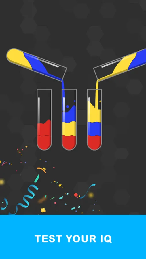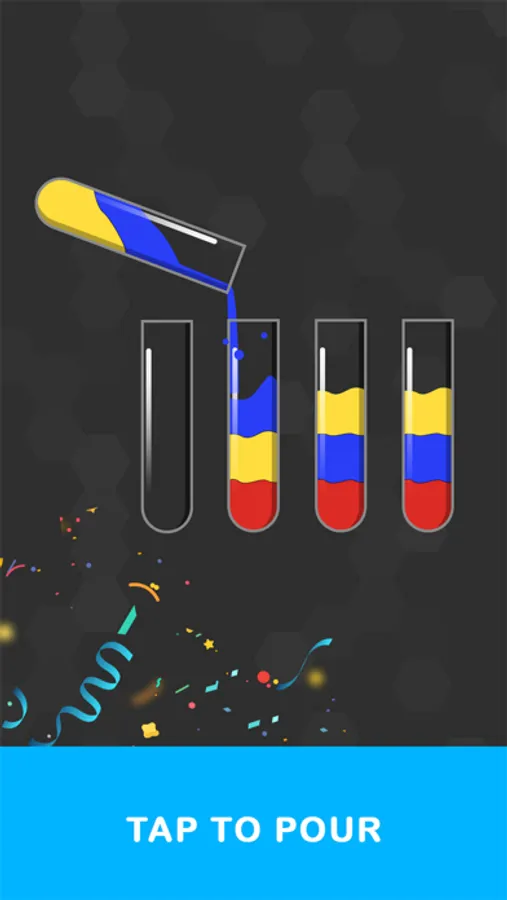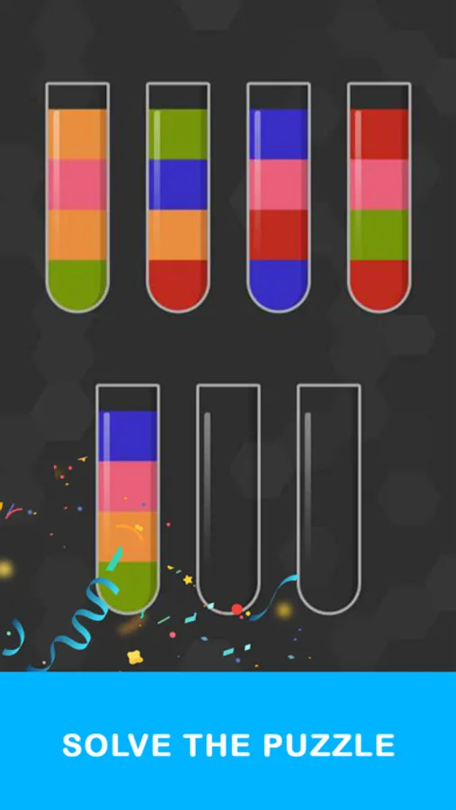 Try to sort it and pour colored water in the tubes until all colors are in the same tube. A relaxing and challenging game to train your brain