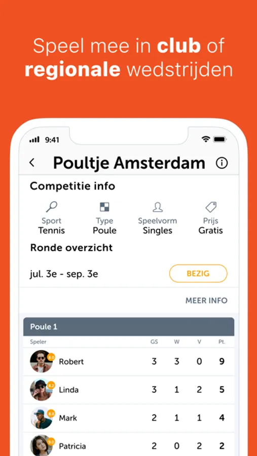 Met KNLTB Match kun je meespelen in club competities en multi-club competities (cluboverstijgende wedstrijden). Via de app word je gekoppeld aan tegenstanders van jouw niveau. Jullie bepalen zelf wanneer de wedstrijd gespeeld wordt. Zo kun je zonder je vast te leggen, toch flexibel wedstrijden spelen. De wedstrijden tellen niet mee voor je KNLTB rating.
