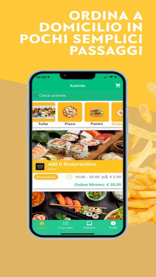 - Fare un ordine di cibo a domicilio da qualunque ristorante, pizzeria, pasticceria, gelateria della tua città.