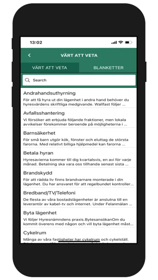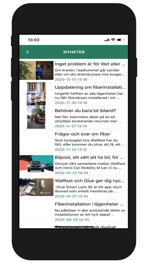 Via appen kan ni prenumerera på notiser som ger dig snabb information direkt i telefonen om händelser som berör dig som hyresgäst.