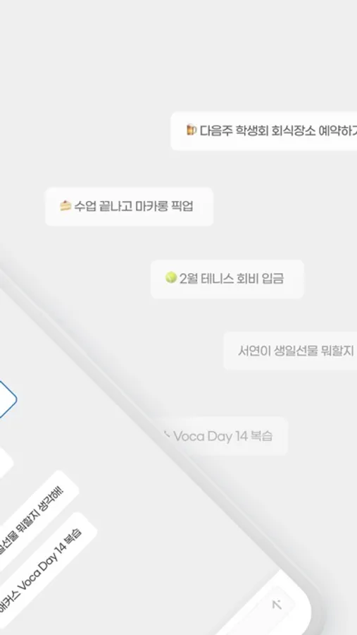 메인화면에서 잊어버리면 안되는 일들을 기록해 보세요.
