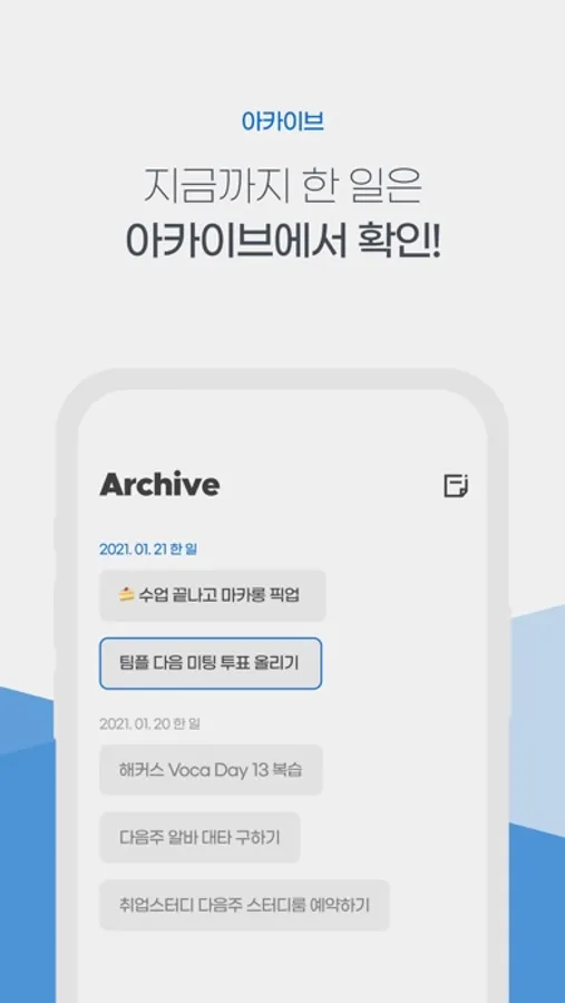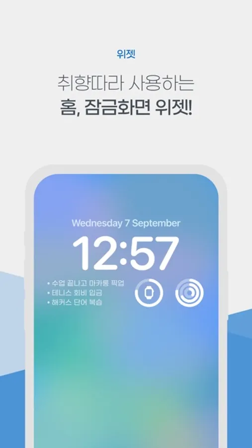 오늘 할 일, 최근 할 일을 홈 화면과 잠금화면에서 확인하세요.