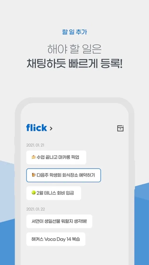 잊어버리면 안될 일들만 플릭이 대신 기억할게요.