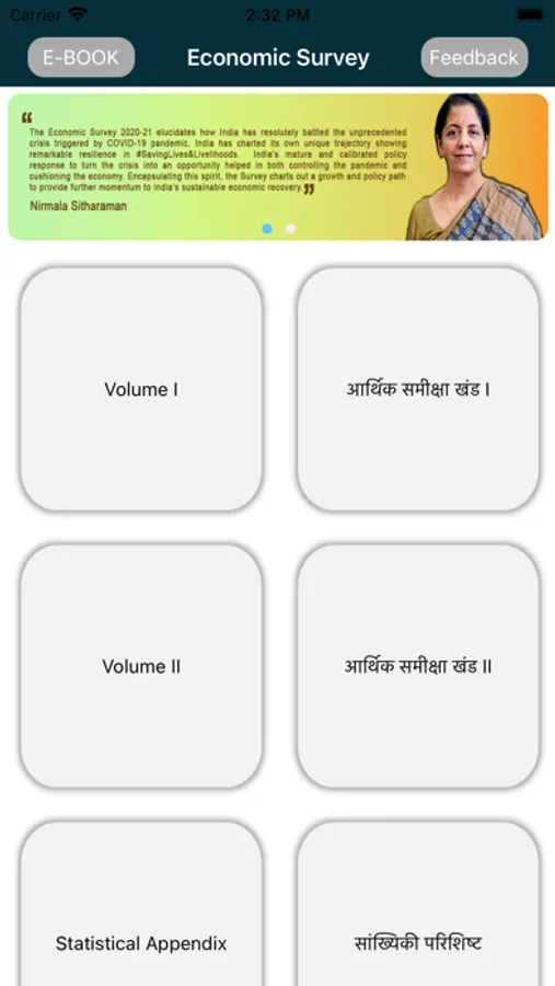 Economic Survey of India is the official mobile app for 'Economic Survey of India', which is the flagship annual document of the Ministry of Finance, Government of India. This document is presented to both Houses of the Parliament during the Budget session every year.
