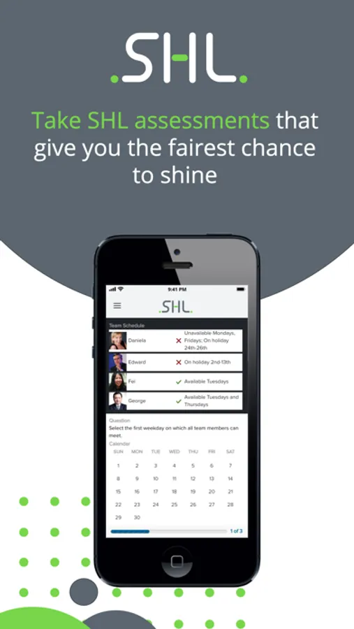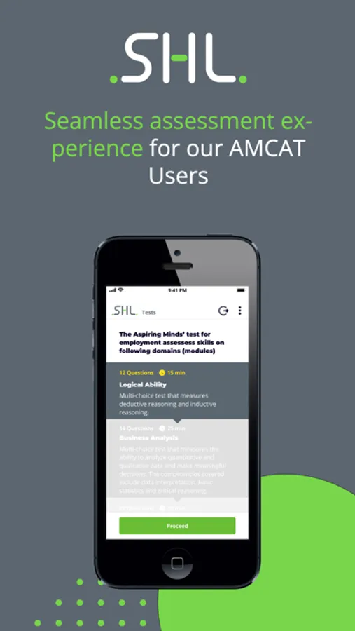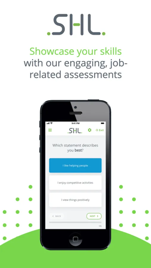 SHL supports businesses around the world with an advanced assessment experience that helps candidates like you demonstrate your skills, potential and fit. With help of our app, you can quickly complete assessments using your mobile device anytime, anywhere you want.