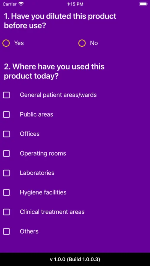 Users' basic demographic info (job / location / gender / age range) along with a product barcode (sourced via the barcode scanner in the app) is sent to a secure University hosted database; along with text/numeric answers chosen from specified options, to questions about the product's usage environment (where used / ventilated or not / dilution details / how much used / how long used).