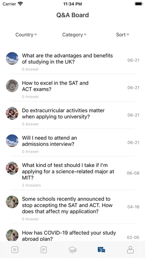 Q&A Board: Students can ask any questions related to studying abroad topics, and the experienced consultants will provide solutions and suggestions accordingly.