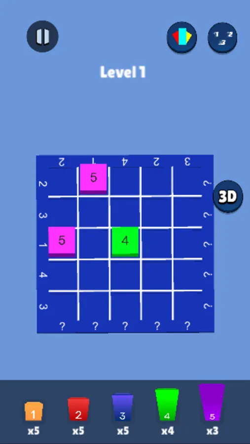Select one of the grids ranging 3x3, 4x4 and 5x5 that have x level of difficulty.