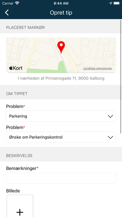 • Beskriv eventuelt problemet i tekstfeltet og tilføj billeder, hvis det ønskes.