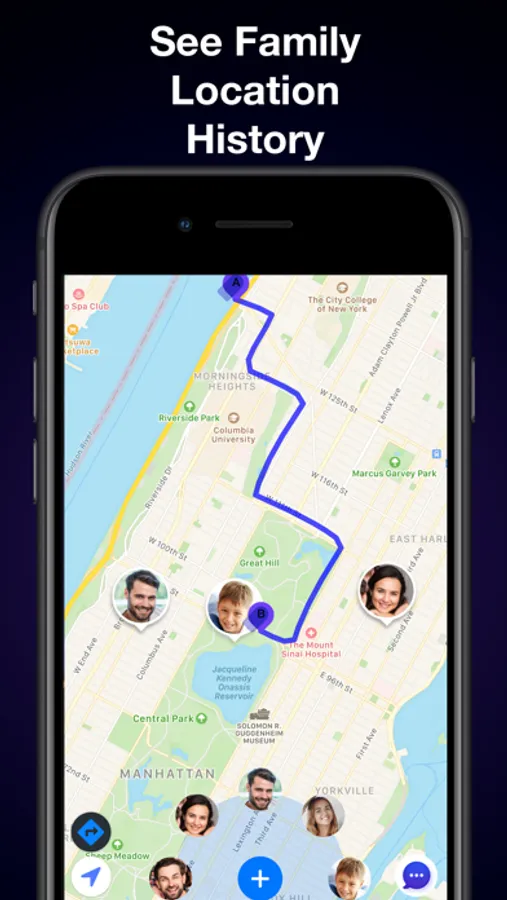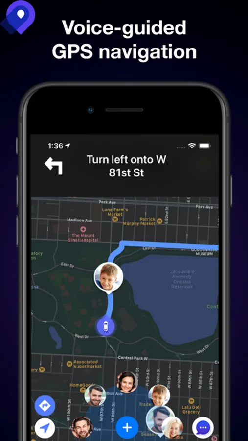 Simply install the Family & Friend Locator on everyone’s phone or invite your beloved ones or friends. Once registered, each member appears as a unique icon on the map so you’ll always know where your family members are. All members of your circle automatically get app features like navigation at no extra cost.