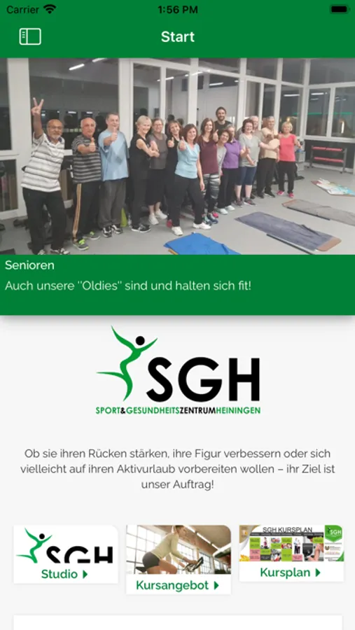 Ab sofort sind unsere Mitglieder mobil. In unserer eigenen App könnt ihr euch unter anderem über Aktuelles aus dem SGH informieren, Sportangebote suchen und Termine einsehen. Das Sport- und Gesundheitszentrum Heiningen bietet mit dieser App interessante Einblicke für Fans, Mitglieder und Interessierte.