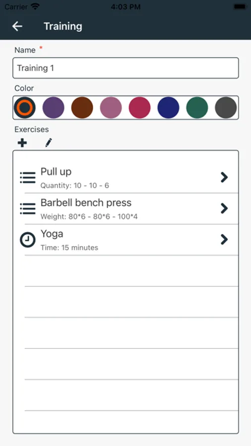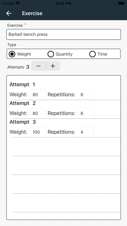 - Customize attempts, repetitions, weights, quantity, time, etc