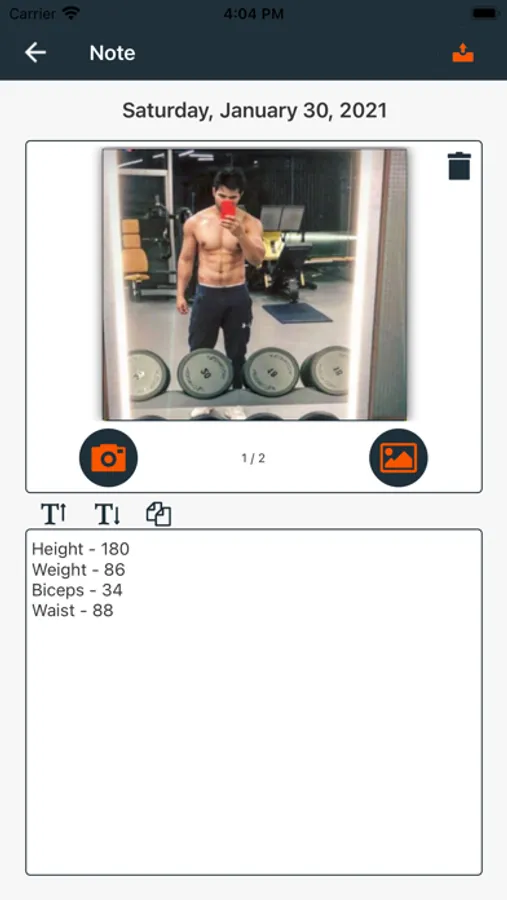 - Save important daily details (weights, height, waist, chest, biceps size, etc)