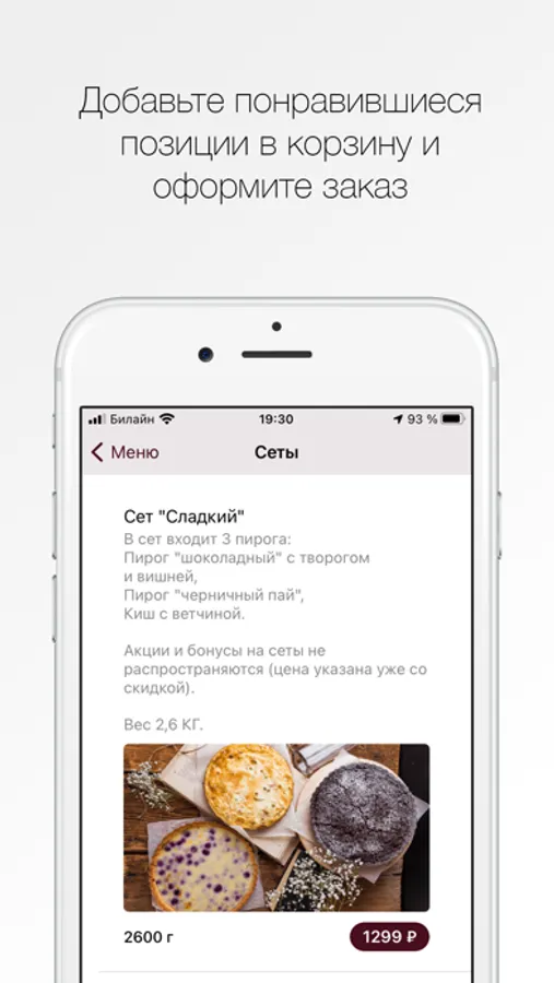 Как сделать заказ в приложении “Бараулинские пекарни”: выберите понравившиеся позиции из меню, добавьте их в корзину и перейдите на экран оформления заказа (по нажатию на иконку корзины).