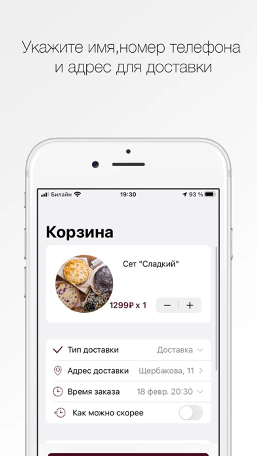 Укажите время, когда хотите прийти за своим заказом или выберите доставку с указанием времени и адреса доставки.