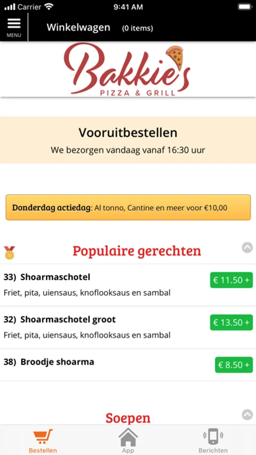 Download onze app en blijf op de hoogte van het laatste nieuws en de nieuwste acties, aanbiedingen en kortingen. Via onze app kunt u onze menukaart bekijken en direct vanaf uw telefoon uw bestelling plaatsen. U kunt via de app ook met iDEAL betalen!