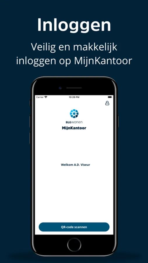 Veilig en makkelijk inloggen met QR-code op MijnKantoor doet u met de MijnKantoor BLG Wonen App.