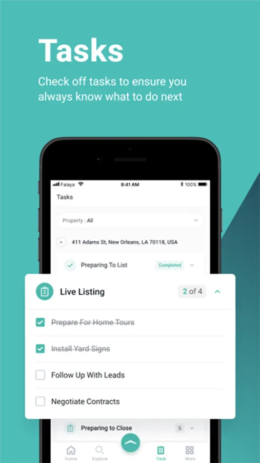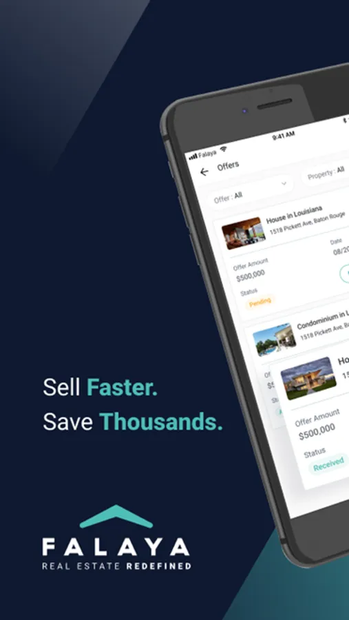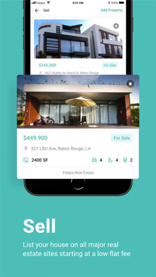 SELL A HOME - When you download the Falaya app are able to list a property, right from your device, in less than 10 minutes. With a variety of pricing options, starting as low as a $399 flat fee, you get pick a plan and add on-demand services that work best for your unique situation. You are in control from day one!