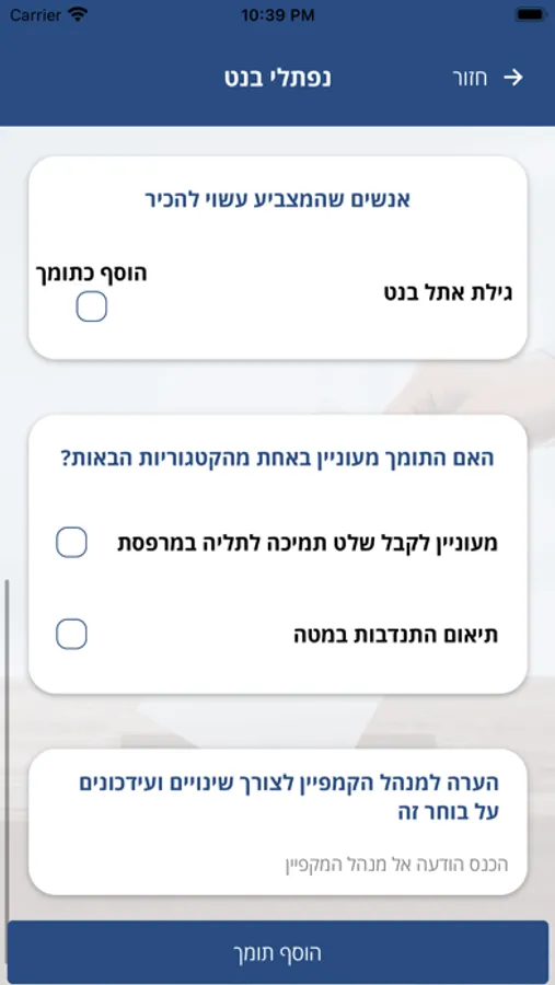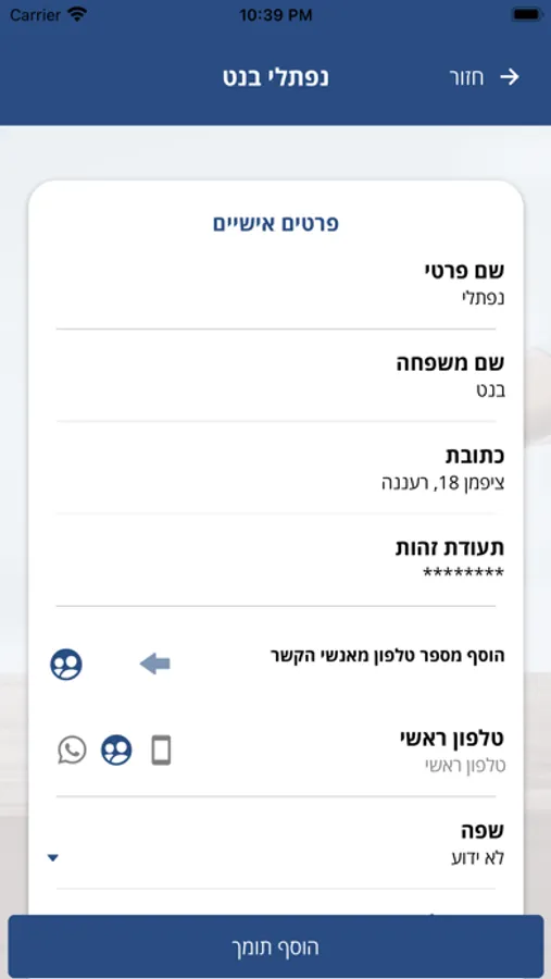 תנאי שימוש: יש להוסיף אנשים רק באישורם וידיעתם.
