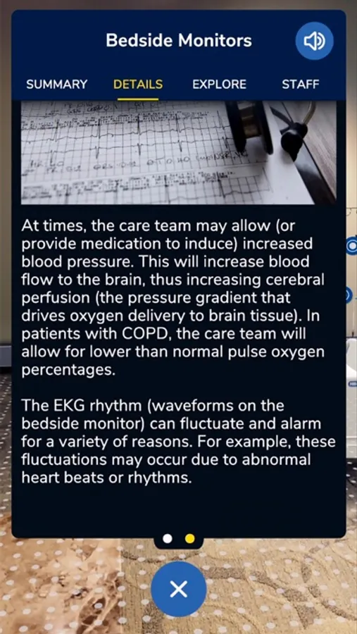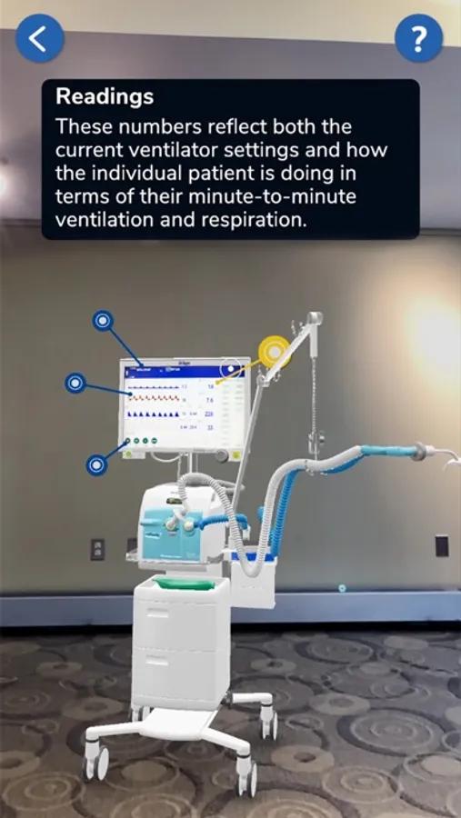 - Interact with the equipment on-screen and pull up informational panels about each piece of the hospital equipment including use cases and safety information.