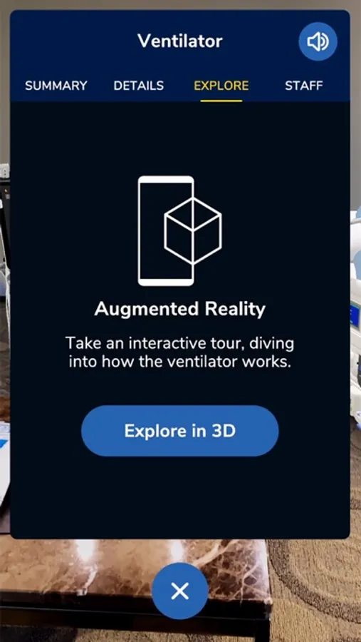 - Use your phone’s camera to scan the ground and place a 3D representation of the hospital equipment into your environment.