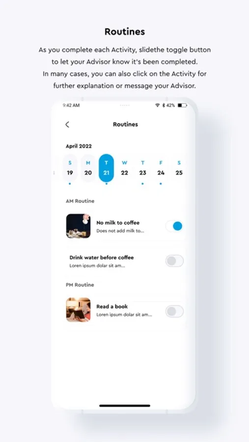 This is the only all-in-one solution that incorporates every tool Advisors could possibly hope to have in a single platform. For the first time Advisors can easily set up robust routines, courses, classes, and communities. There is also multi-level messaging, habit practicing, journaling, and blue tooth capabilities that include Apple HealthKit.