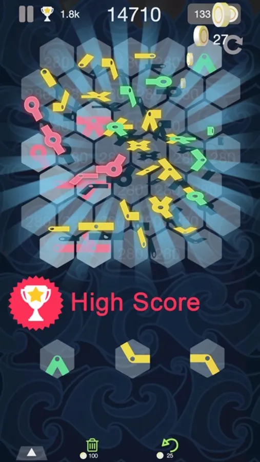 Try building lines as long as possible - this will earn you coins and a higher score. During the game, blocks of three different colors appear. Colors match only with the same thus adding complexity to the game. Note, the finished line must be made of pieces of the same color. But don’t worry! Among the blocks there are two-colored ones, as well as connector blocks. These can be connected with other similar stations of any color.