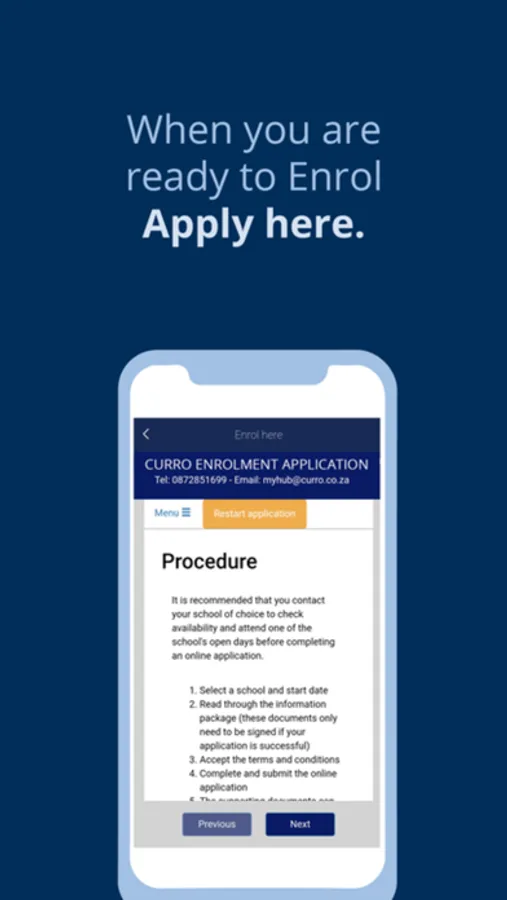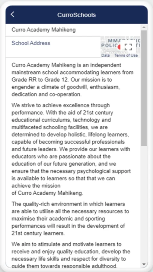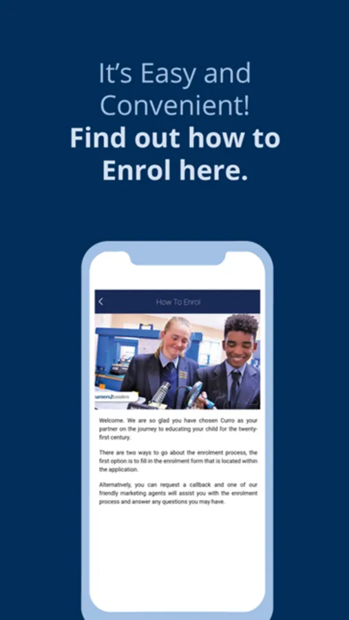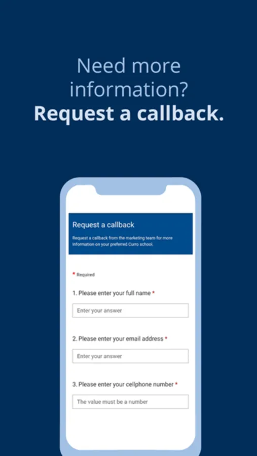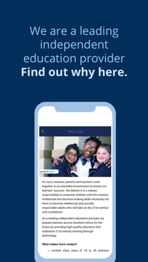 The Curro enrolment app is aimed at parents finding an interest to enrol their children at Curro. The objective is to simplify the enrolment process by searching for a school of interest, then seamlessly applying. Everything you need to understand about our offering is right here, academics, activities, facilities, fees and location convenience.
