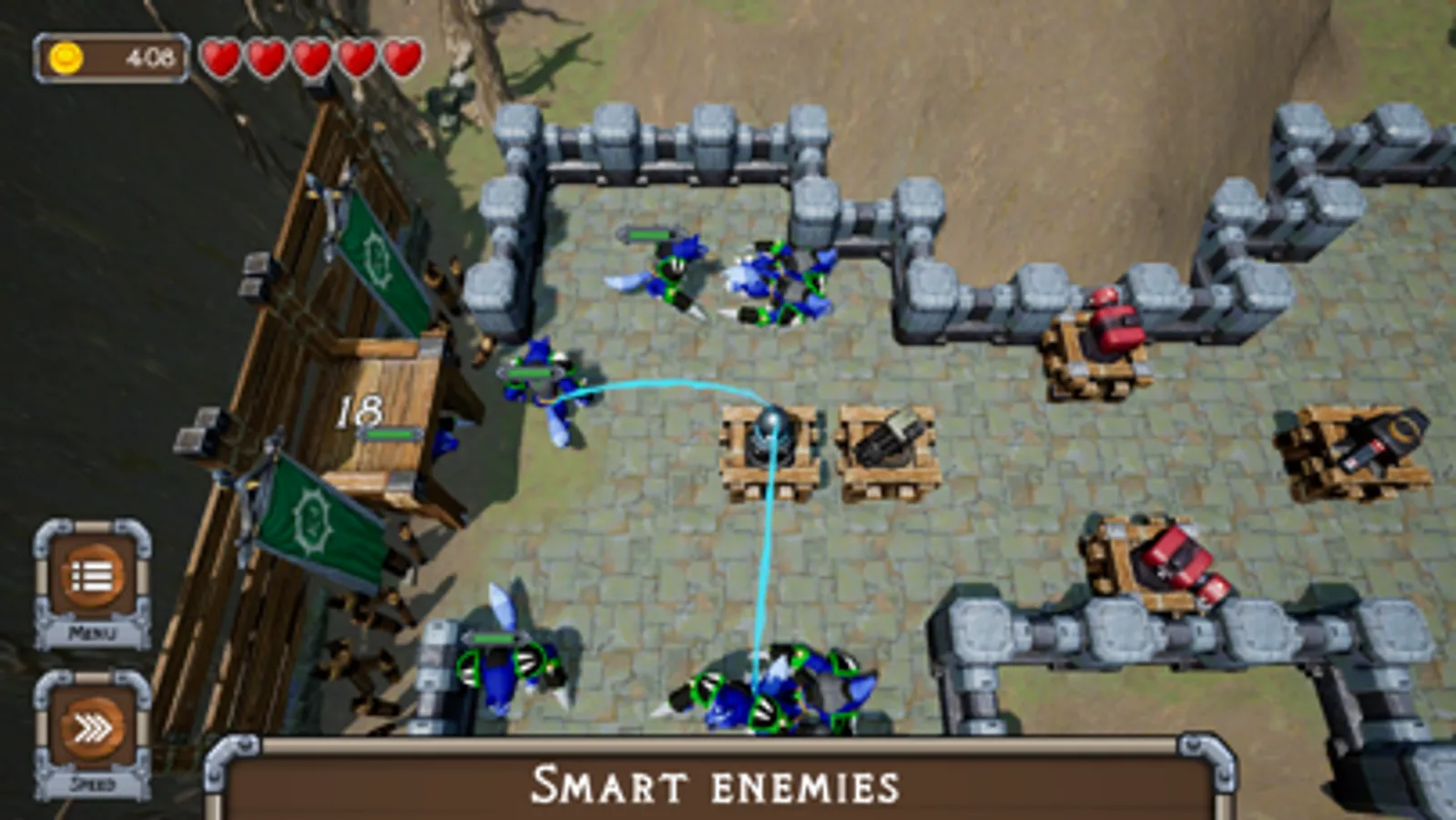 A Tower Defense Game in which the path is not defined. You can place your towers anywhere on the grid. The enemies will always find the safest and fastest way through your defenses. They are smart and can destroy your towers if you don't plan ahead with their stability. Plan as long as you want and lean back when the enemies are attacking. During the wave you can see your work unfold and enjoy the cinematic fight.