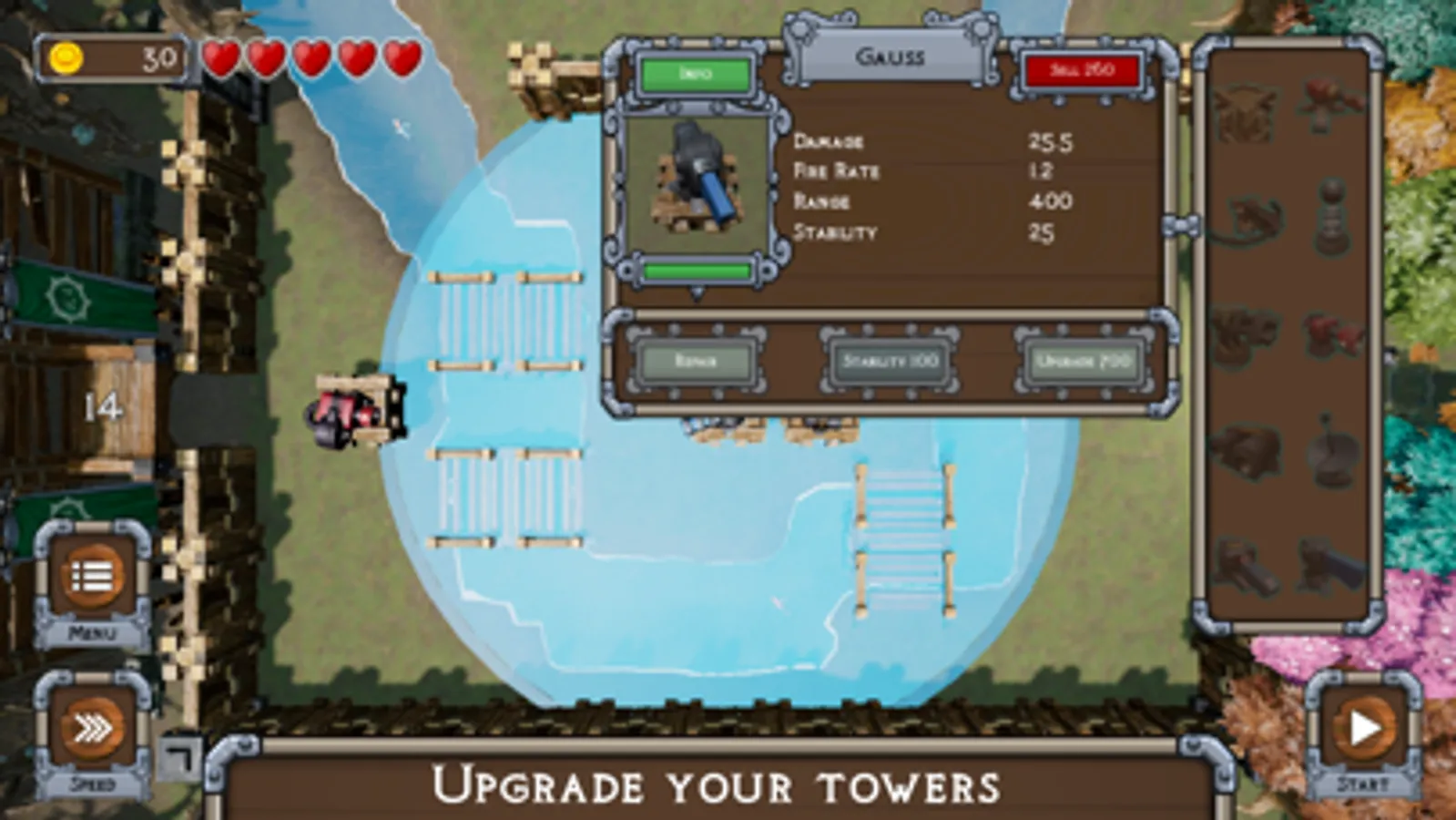- Choose between 10 different towers.