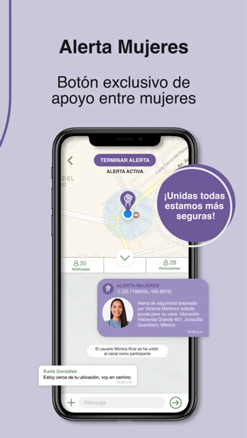 - Alerta mujeres: incluye un botón de pánico exclusivo para mujeres.