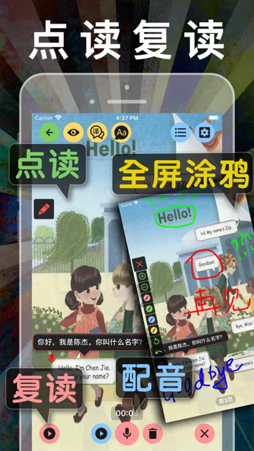 点读功能:点到哪里读哪里,点读翻译样样行,孩子跟着一起读,在轻松快乐中学习。