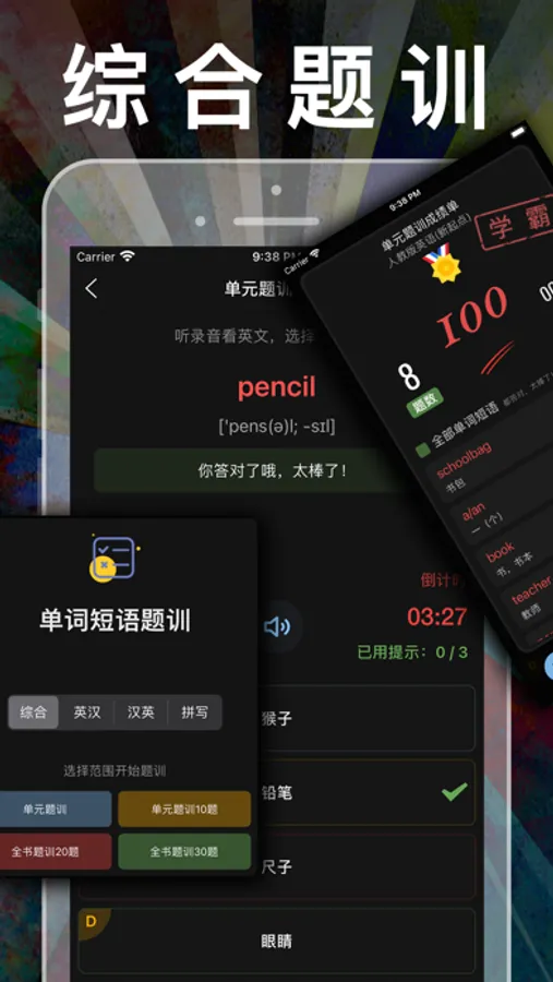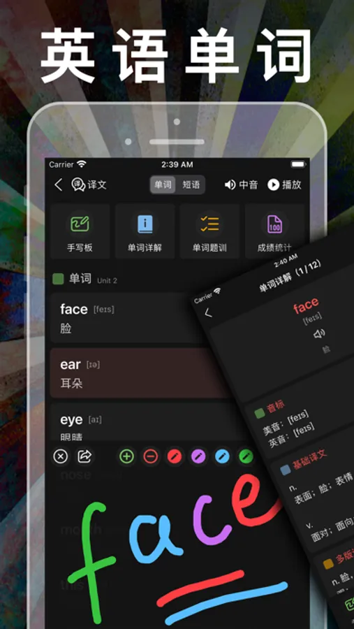 词语测验:记录学习单词短语,图标统计,让进步有个见证!