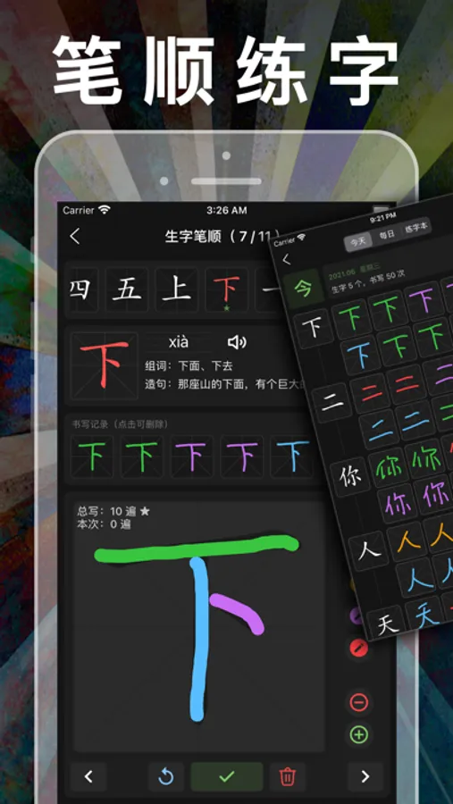 生字训练:手写板,拼音练习、笔顺笔画书写