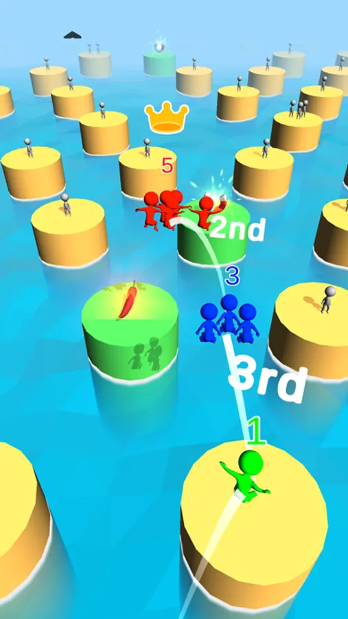 Exciting platform jumping competition. Gather a large team and defeat all opponents. Build tactics, collect boosters and be the first to reach the finish line!