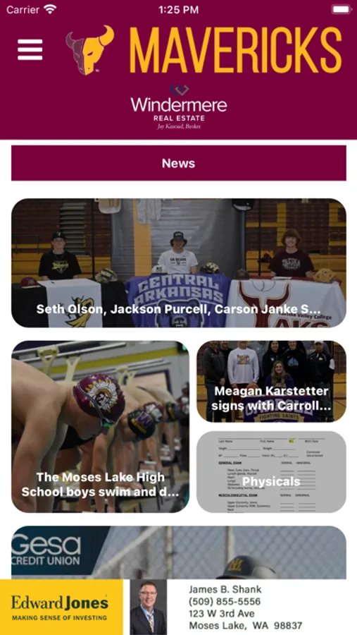 -Supporters: Special Thanks to local boosters and supporters of Moses Lake Mavericks Athletics with a directory including website and in-app calling.