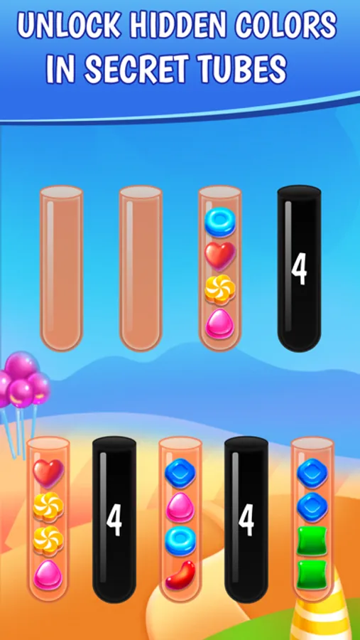 Are you ready for an exciting color sorting challenge? Secret Tube Color Sort is here to test your skills! Dive into a mesmerizing puzzle experience where your goal is to arrange colored balls in tubes, unlocking the mysteries hidden in the secret tubes along the way.