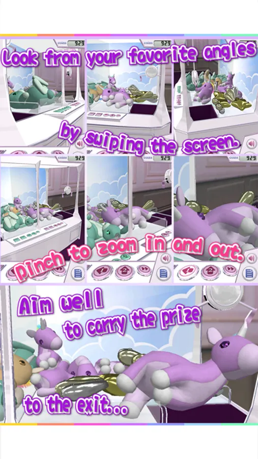 The operation is simple. Just keep pressing the movement buttons and release them at good timings. Swipe the screen to look at the prizes from any angle you like.