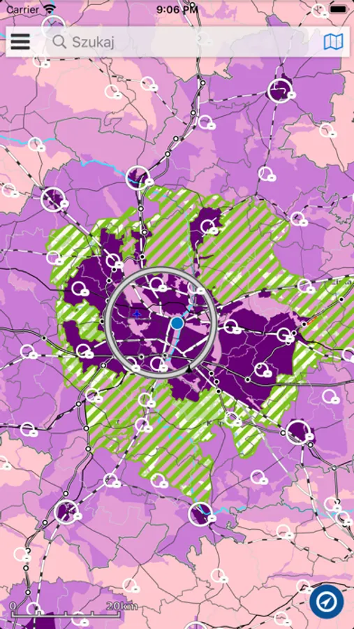 Nawigacja w oknie mapy - zasięg mapy zostanie zmieniony (przesunięty, zwiększony, zmniejszony) zgodnie z działaniem wykonanym przez użytkownika.