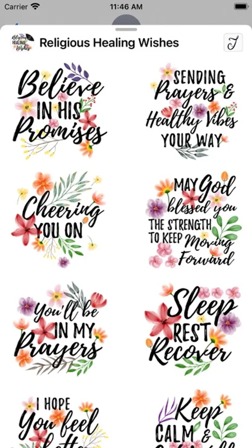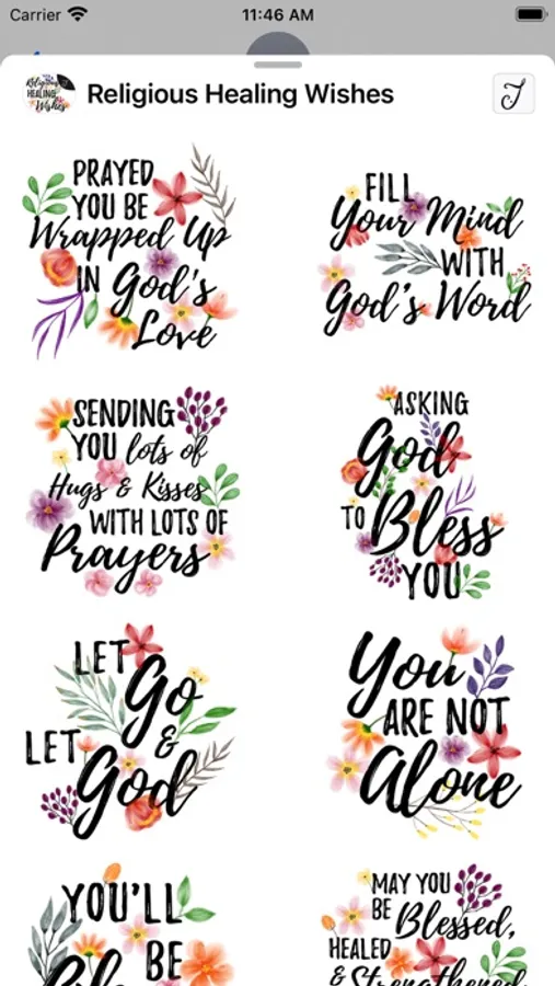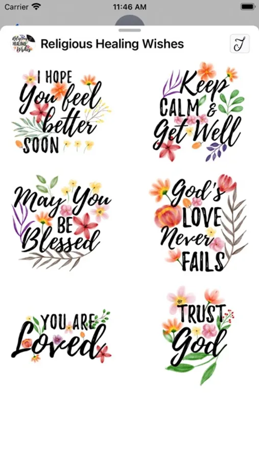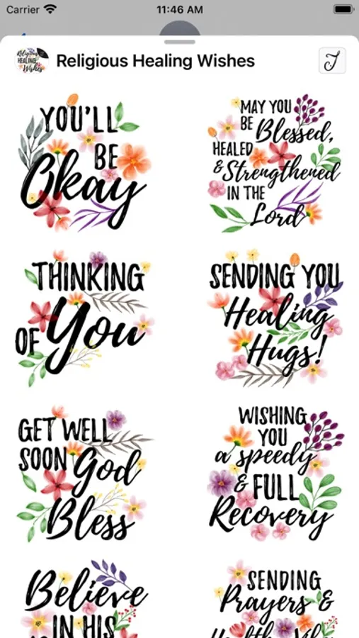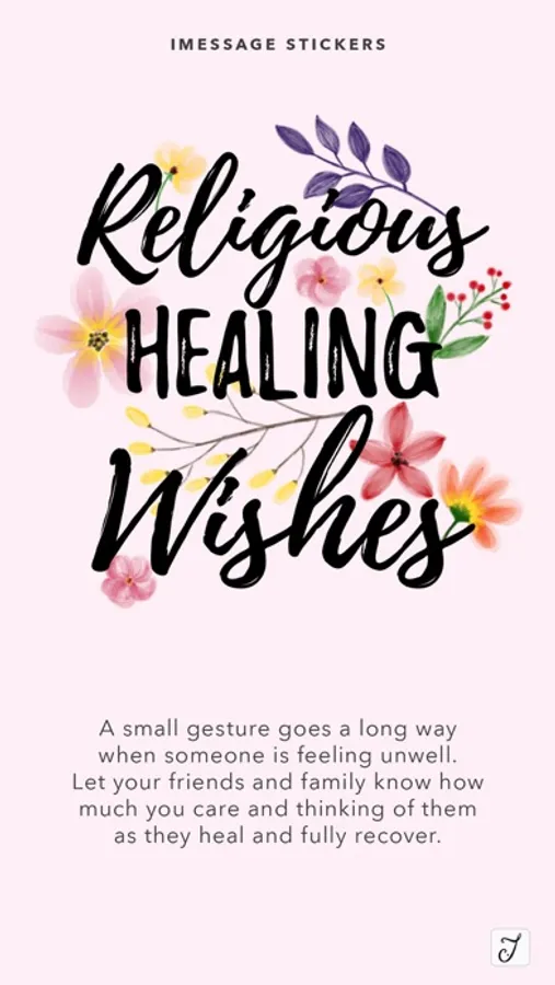 This iMessage Stickers pack comes with religious healing and prayers wishes. Instead of trying to find the right words to say, you can now send your friends and family these well-designed (hand drawn watercolour flowers & greenery) religious greetings as stickers. Make your text message more personal today.