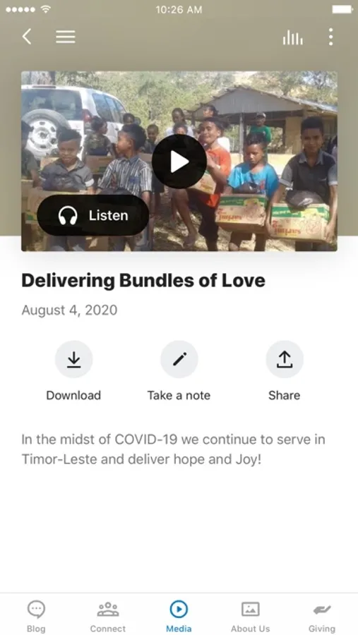This app will help you stay connected with the day-to-day life of SERVING OUR WORLD. With this app you can: watch or listen to media, stay up to date with push notifications; share your favorite content via Twitter, Facebook, or email; and download media for offline listening.