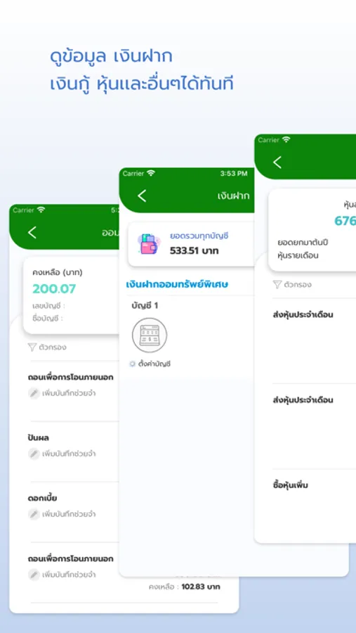 - ดูยอดเงิน รายการเคลื่อนไหวบัญชีเงินฝาก