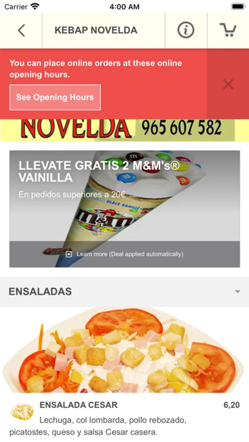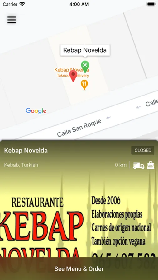 ¿Te encanta pedir tu comida favorita a nuestro restaurante? Utiliza esta aplicación para personalizar su experiencia y beneficiarse de la forma más fácil y rápida de pedir tu comida favorita. Características: - Pedidos de alimentos en línea optimizados para su dispositivo móvil. - Los detalles de pago están precargados, por lo que puedes realizar el pedido con unos pocos clics. - Guarda varias direcciones y elije la preferida al momento de pagar. - Confirmación en tiempo real del pedido, lo que significa que el personal del restaurante confirma tu pedido de inmediato, con el tiempo estimado de entrega. Sin intermediarios, sin centro de llamadas confuso, sin promesas excesivas. Esto es solo entre tu y el Restaurante kebap Novelda.