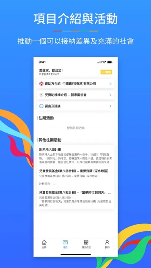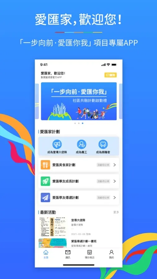 愛匯家APP 為「一步向前·愛匯你我」社區共融計劃所依託網絡平台,宣傳項目及活動,招募義工及參加者。用戶可在愛匯家APP中,隨時隨地接收第一手項目最新活動資訊,以最方便快捷的方式報名並參與活動,亦可上傳活動相片及感想,將活動的正向體驗分享給更多的人。用戶亦可在愛匯家APP登記成為義工,輕鬆瀏覽最新義工資訊,輕鬆一按,即可滿足成為義工、貢獻社區的小理想。