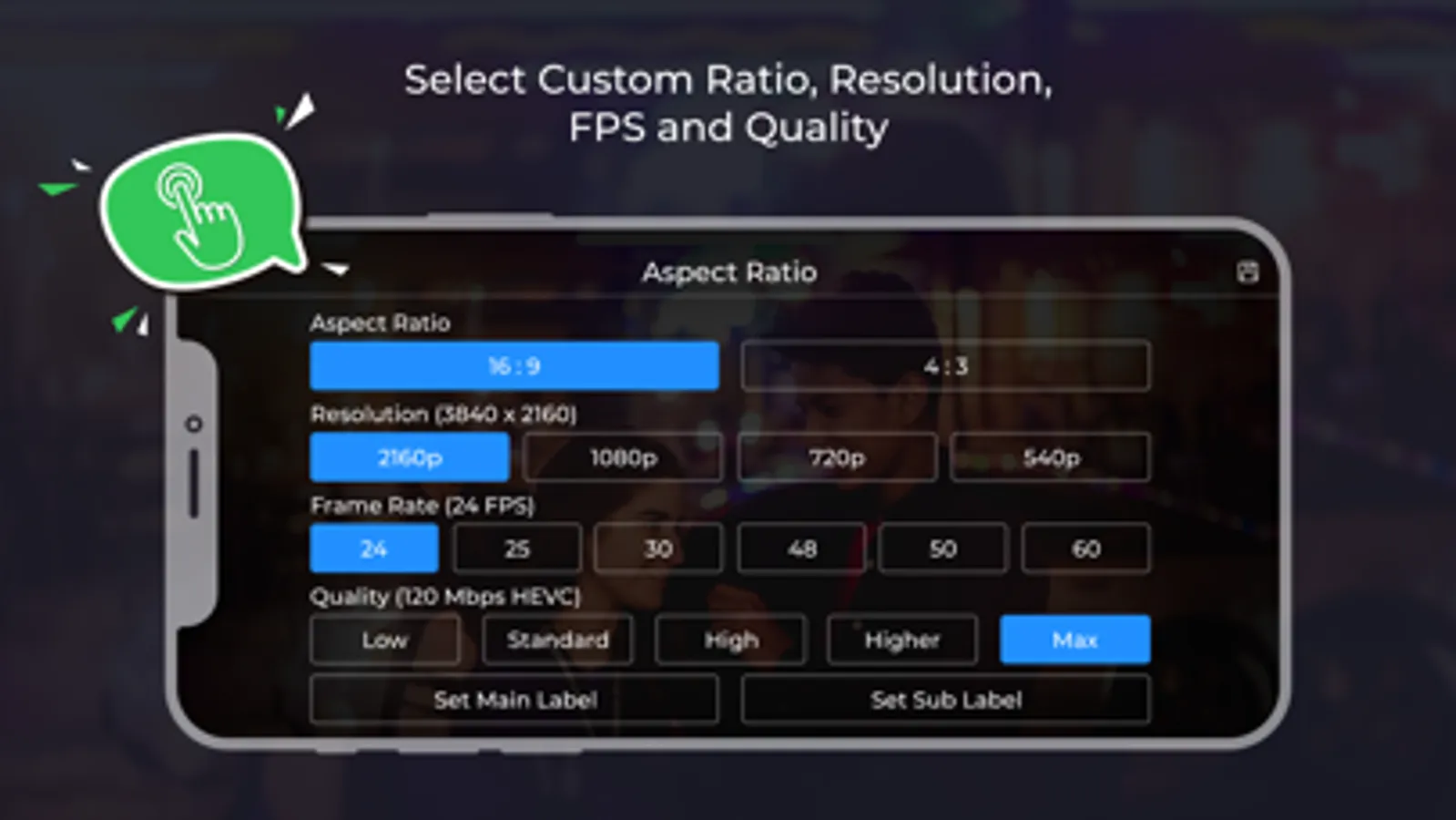 The app will support the following film recording