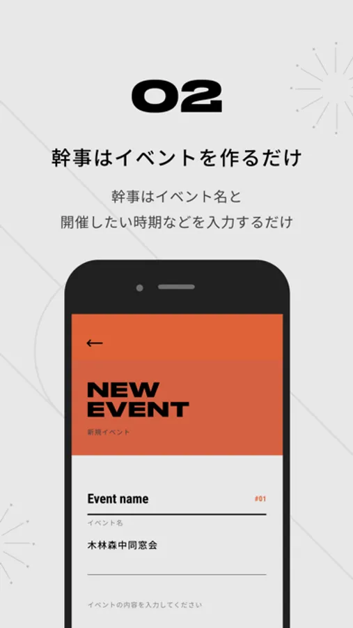 REUNIONを使えば、これまで幹事の負担だった告知や出席管理、投票など、イベントを開催するまでのプロセスをアプリが担当してくれます!